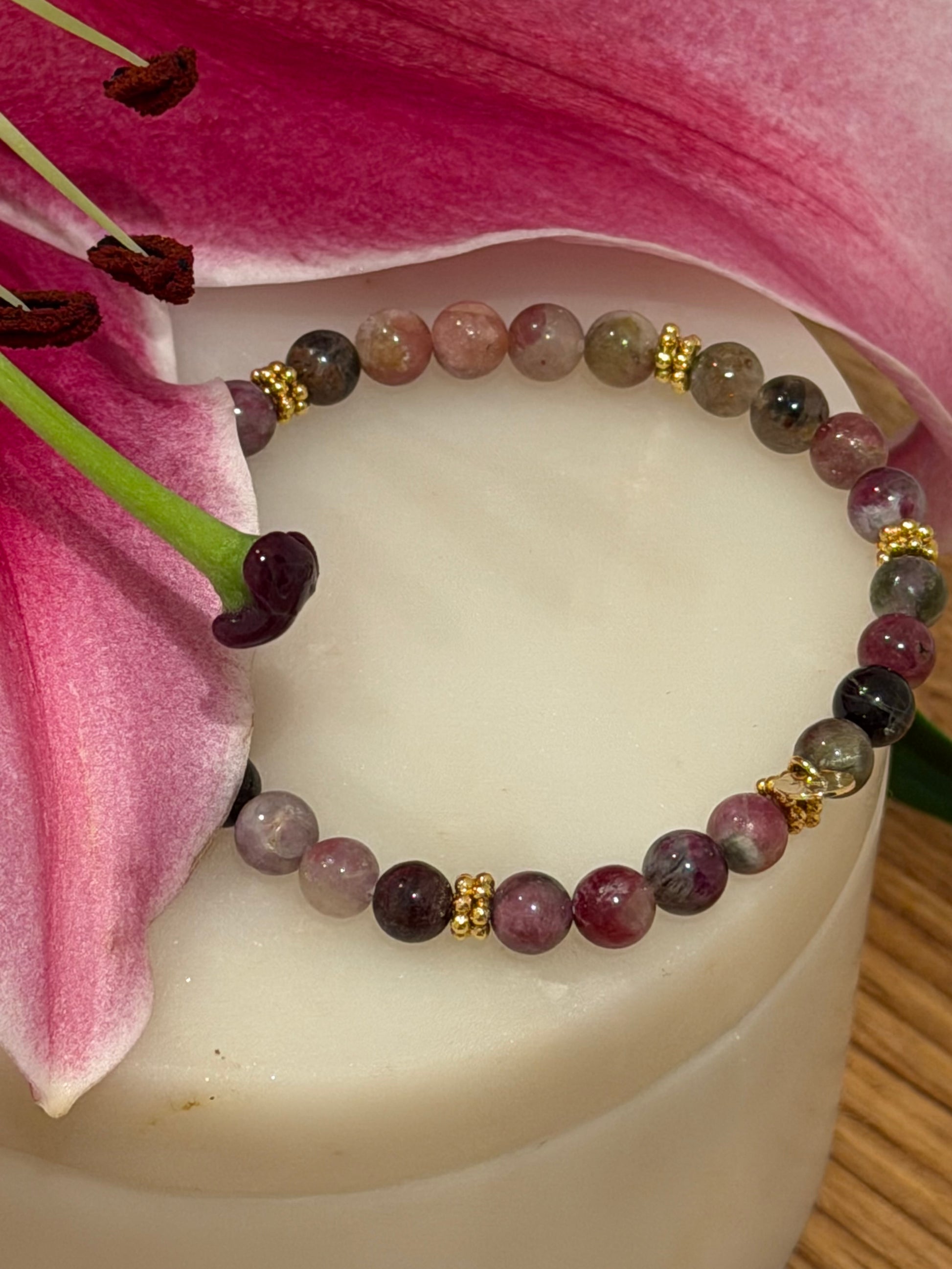 • Steine: Echter Turmalin (Multicolor/Wassermelone).