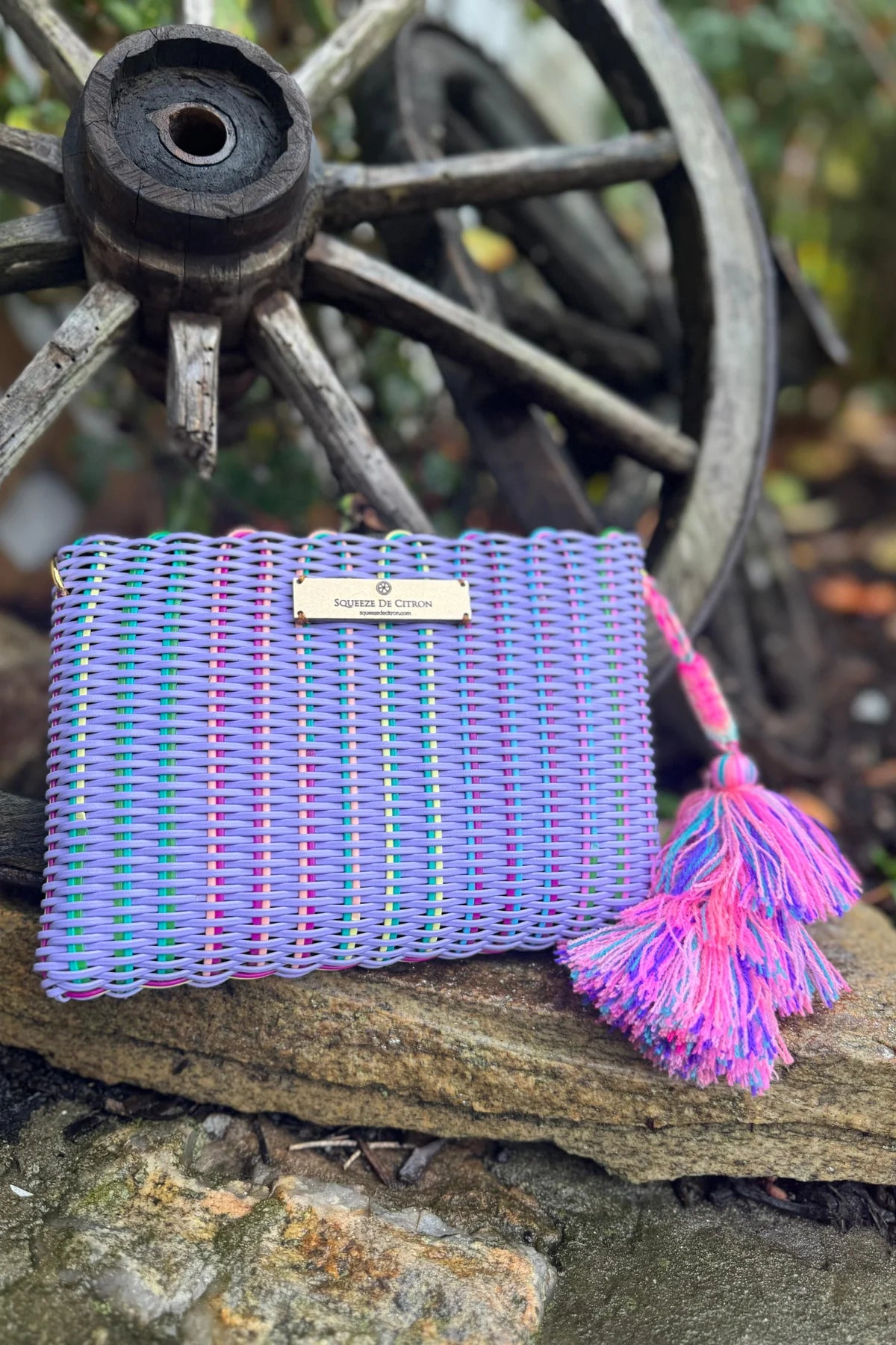 Die lilane Clutch von Squeeze the Citron bringt mit ihren regenbogenfarbenen Schnüren sofort gute Laune in deinen Look. Sie ist wie ein kleiner Kurzurlaub für dein Outfit!
