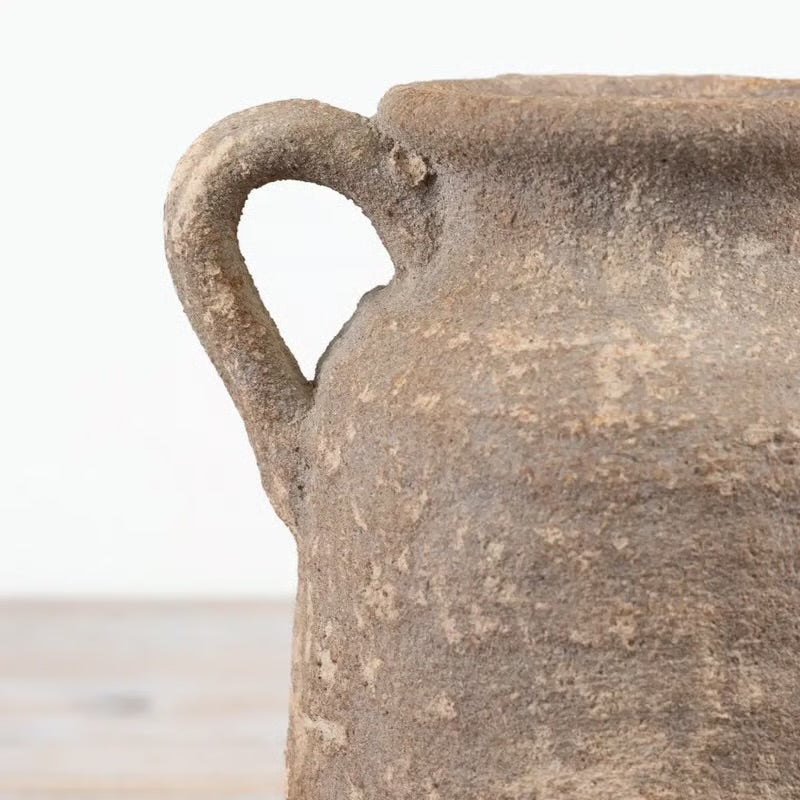 Diese Vase strahlt rustikalen Charme aus mit ihrer strukturierten Oberfläche und den kunstvollen Griffen und ist eine perfekte Ergänzung für jede Wohnkultur. Ob als eigenständiges Stück oder gefüllt mit frischen Blumen, diese Vase verleiht jedem Raum einen Hauch von rustikalem Charme.