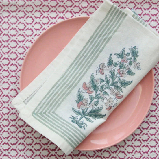 2er Set Servietten aus feinster 100% Baumwolle Handbedruckt in Indien Fairmade.