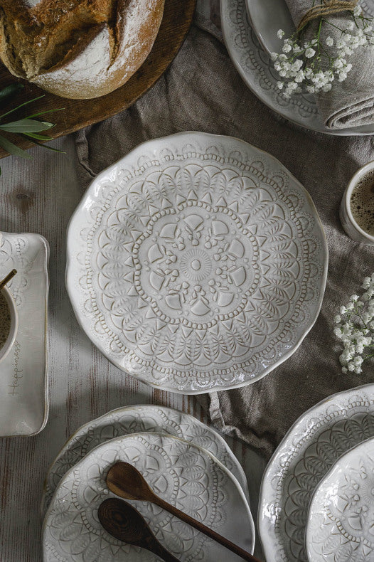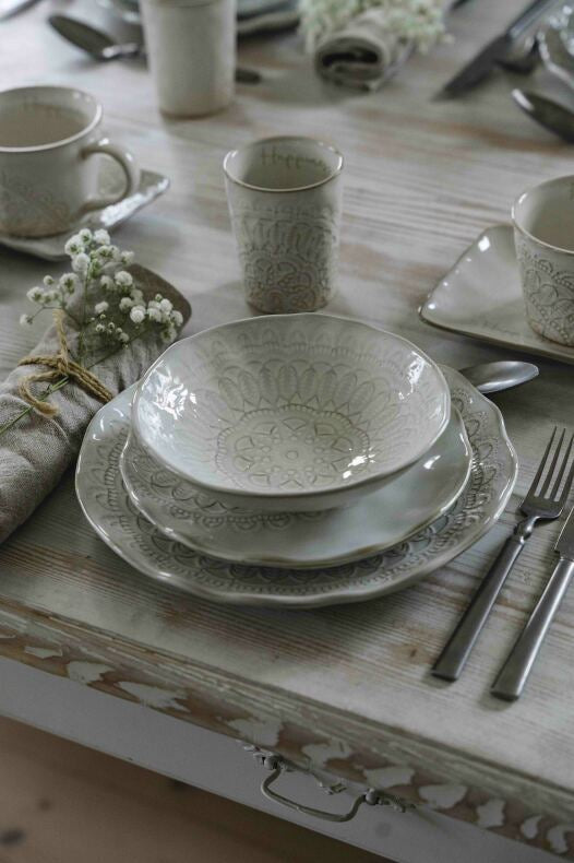 Die handgefertigte Steingutserie mit geprägten Mustern in einer wunderschönen, lebendigen Optik.