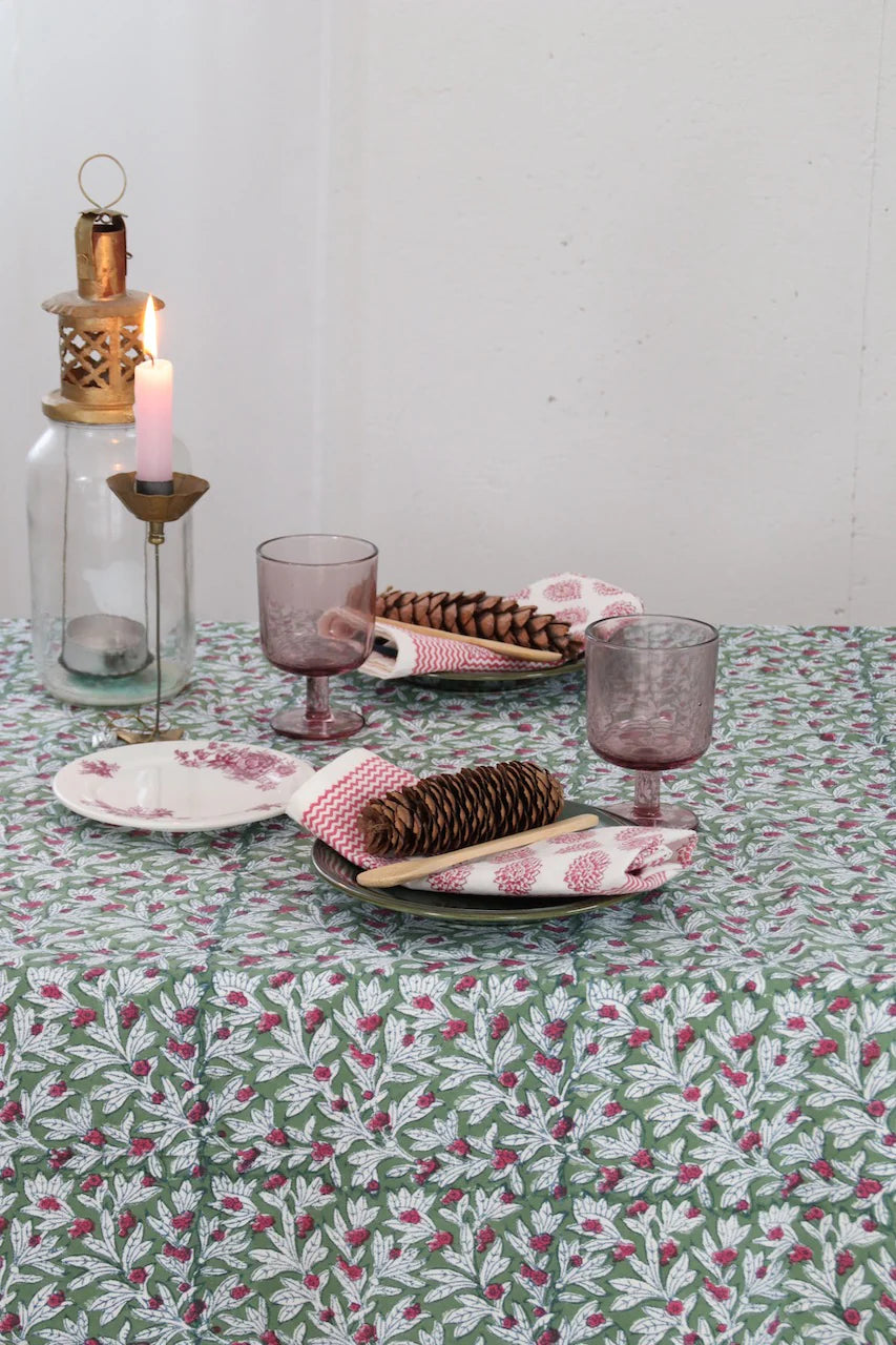 Tischdecke Wakame Grün wird in einer kleinen Fabrik in Delhi, Indien, hergestellt. Mit der Wahl dieses Produkts unterstützen Sie die talentierten und leidenschaftlichen Kunsthandwerker, die sich für den Erhalt der Kunst des Blockdrucks einsetzen.